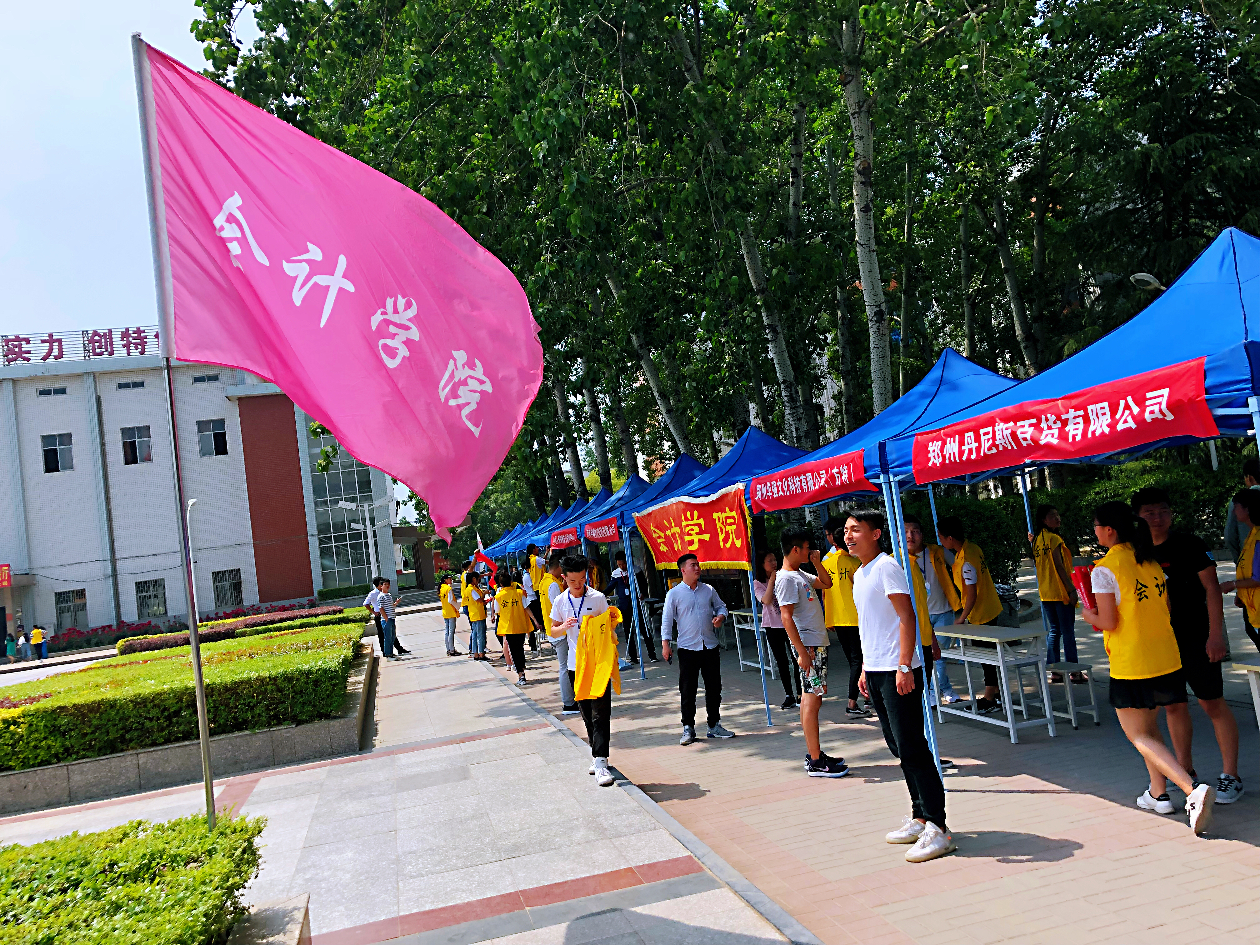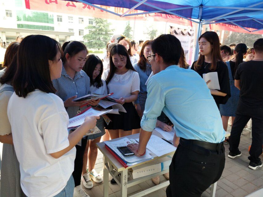 曾读苏轼词:“休对故人思故国,且将新火试新茶,诗酒趁年华”。趁着春色正好,同学少年,风华正茂,每一个日子当如诗如画。青春如歌,跳荡壮丽豪迈的音符,春风正好,生命如火如荼般绽放。2018年5月8日,在河南应用技术职业学院就业指导中心领导下,会计学院承办的“会商2019届学生顶岗实习招聘双选会”在学院北广场成功举办。本次专场招聘双选会共有900余名2019届毕业生参加,32家省内外知名企业来校,提供岗位800余个。