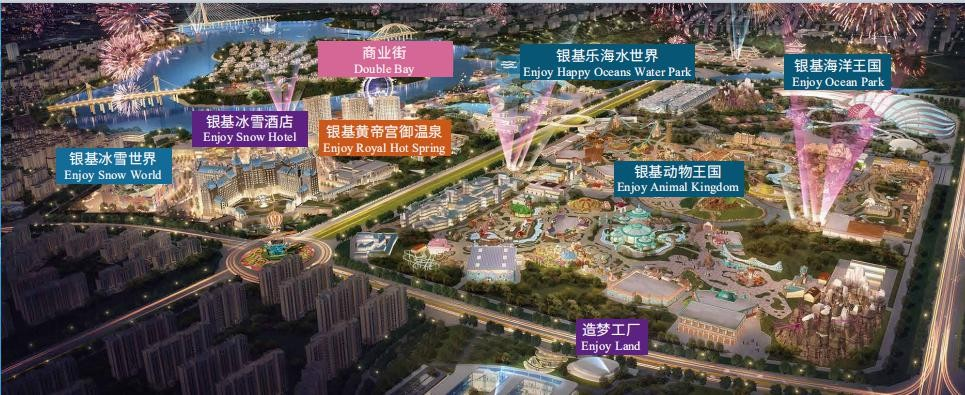 融城度假圈,交通极为便利。项目规划面积1.6 万亩,目前已建成项目有银基黄帝宫御温泉、银基乐海水世界、银基冰雪世界,在 建项目有银基动物王国、银基冰雪酒店、银基滨海湖商业街、银基海底世界等。