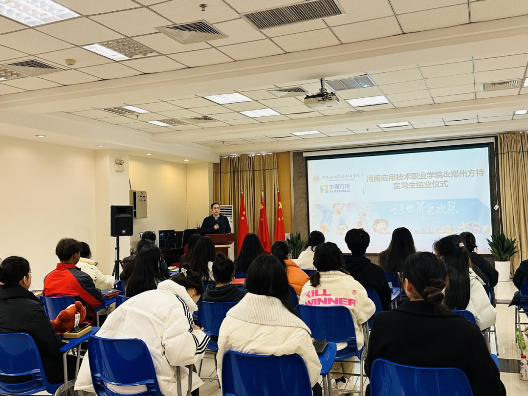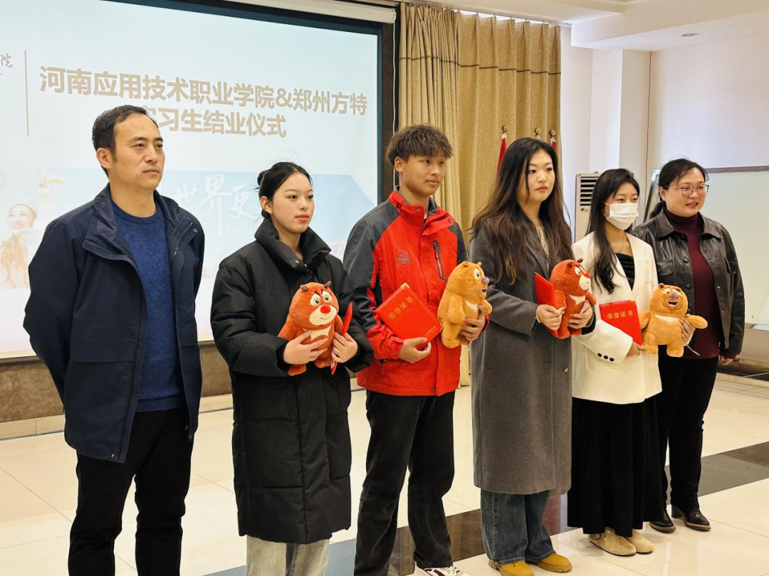 12月7日,beat365英国官网网站党总支书记李兆楠、院长张召哲一行赴郑州方特参加实习生结业仪式。郑州方特人力资源中心主任姚真真、28名实习生参加结业仪式。