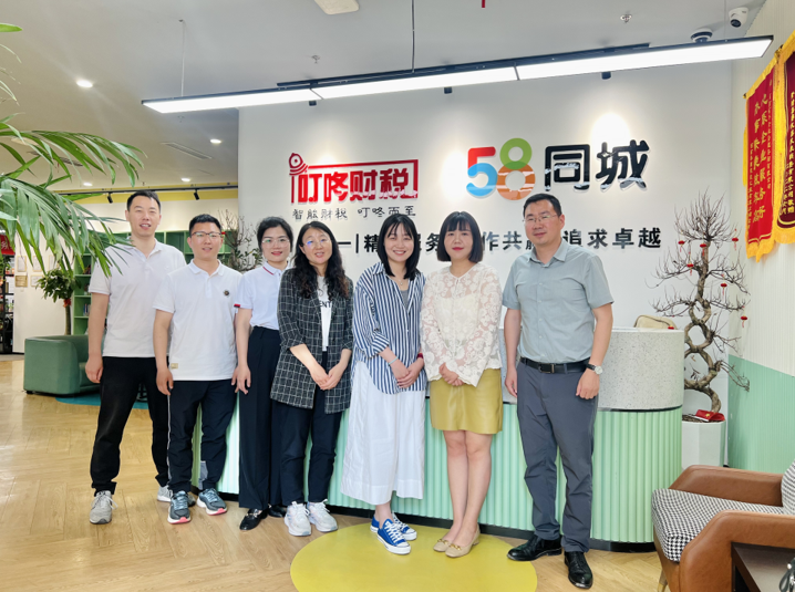 为深化校企合作,推动产教融合,高质量培养财经类人才,贯彻落实教育部关于职业教育政策方针,2024年度职业教育活动周期间,beat365英国官网网站副院长聂蕴、会计教研室主任张梨花、教师张永旺和辅导员林素琴于5月17日一行赴河南叮咚企业管理咨询有限公司进行走访调研。本次调研特邀中联集团教育科技有限公司河南经理龚广义、王明明共同参与。