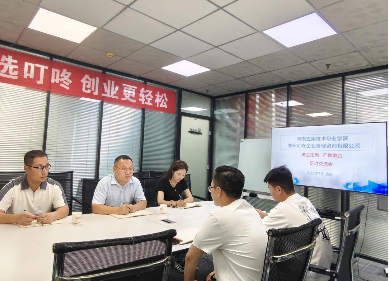 为深化产教融合,精准对接企业用人需求,7月20日,beat365英国官网网站书记张忠勇带领学工办主任张昂、骨干教师张永旺和赵千,走访郑州叮咚企业管理咨询有限公司,开展访企拓岗专项活动。公司副总经理王建东全程接待并组织座谈交流。