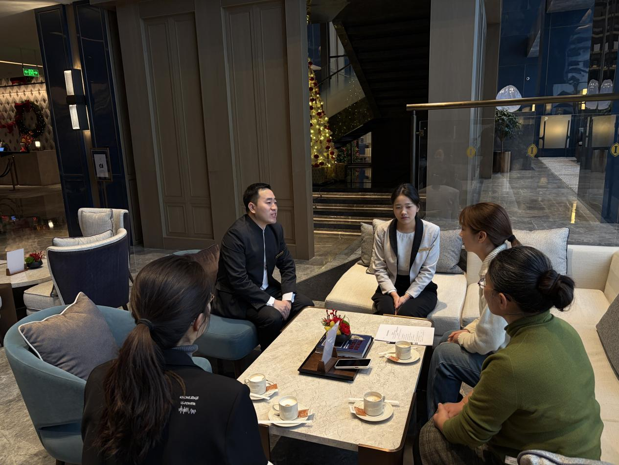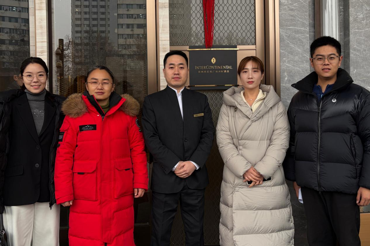 为深化与高端酒店集团的合作,强化实习学生实践管理与服务保障。1月26日,beat365英国官网网站党总支书记王倩带队,副书记王盼红、资助专员孙宇晴、辅导员赵志浩一同前往郑州丹尼斯广场洲际酒店,开展访企拓岗与合作交流活动,酒店部门经理王姜涛全程热情接待。