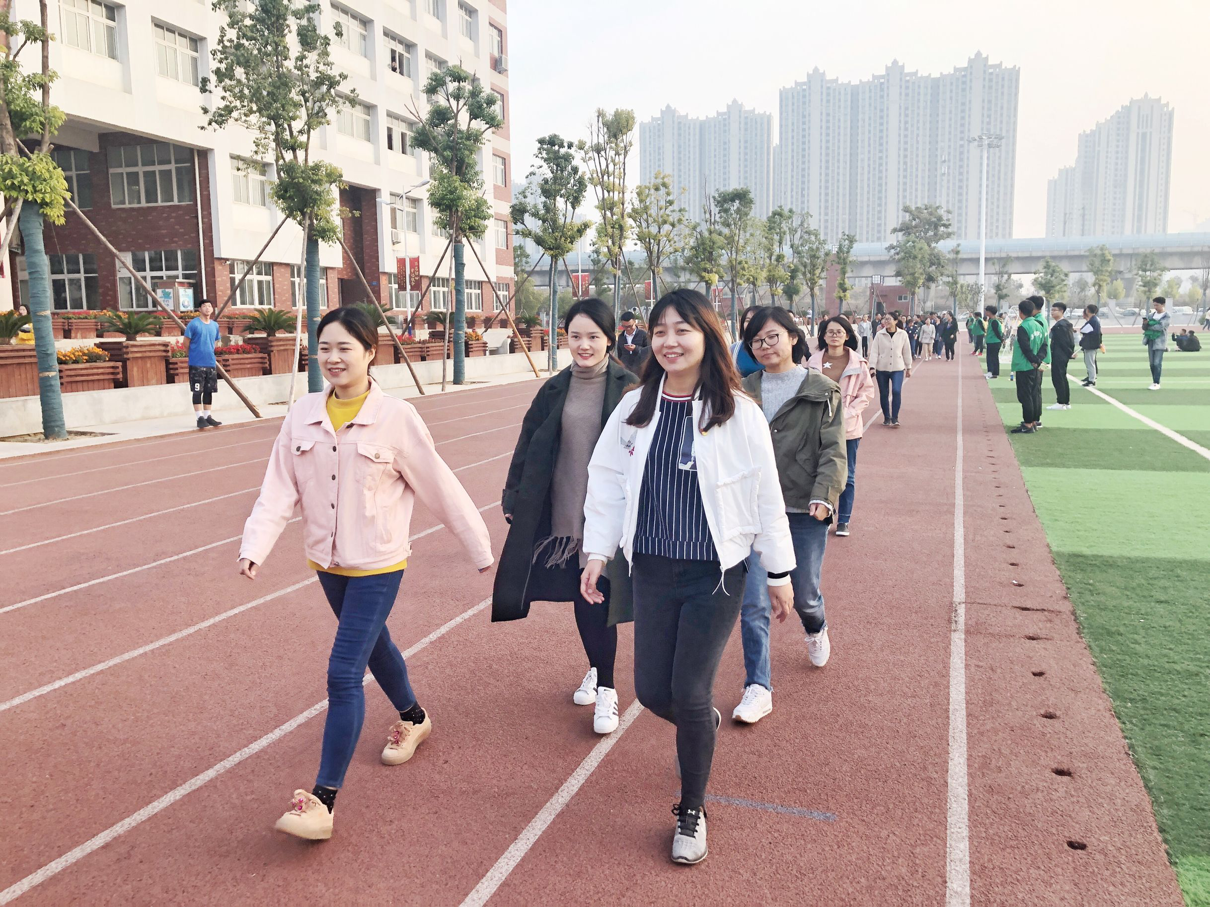 为推动职工健身运动的开展,舒缓工作压力,培养良好的运动健身习惯,提高职工的身体素质,将健康融于日常生活与工作之中,beat365英国官网网站分工会于11月05日在田径场举行了“健康生活,快乐工作”健步走活动。活动开始之前,分工会主席李兆楠向大家介绍了开展活动的目的和活动规则,全体教师绕操场健步走五圈,奖励前六名,每位老师均获参与奖。活动中,教职工们个个精神抖擞,意气风发,有说有笑,享受着秋日暖阳带来的愉悦和健步走带来的健康快乐。