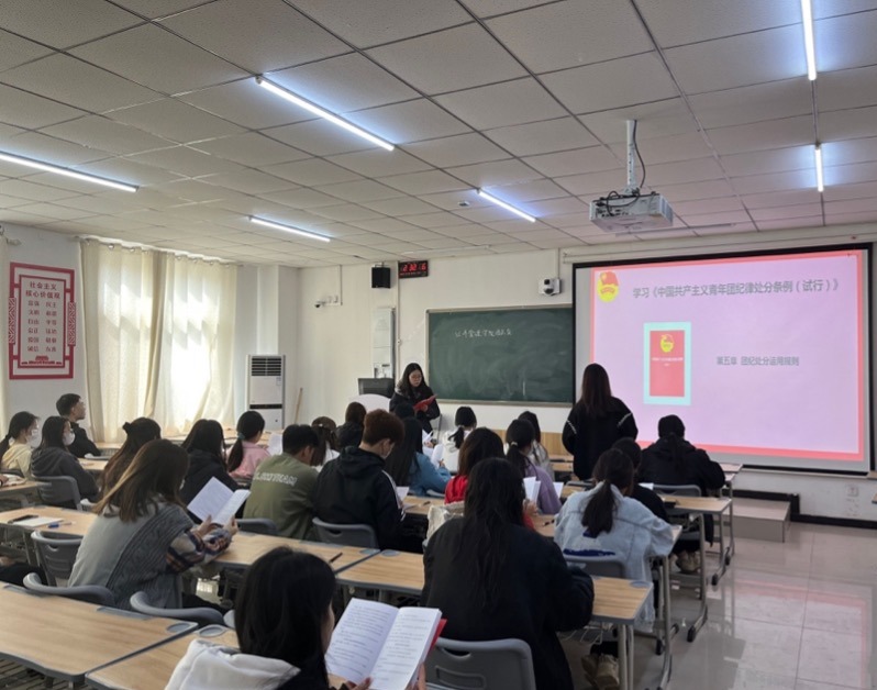 会议伊始,孙老师带领团支书集体学习《中国共产主义青年团纪律处分条例(试行)》具体内容,结合具体案例和时代特征,嘱咐团支书应要不折不扣落实习近平总书记关于从严治团的重要要求,将习近平总书记关于团组织、团干部、团员的一系列指示要求贯彻到各项工作和建设中。要求经管团总支全体团员应坚持学习宣传贯彻党的二十大精神,聚焦抓好党的事业后继有人这个根本大计,团支书应积极履行引领凝聚青年、组织动员青年、联系服务青年的基本职责,团结引领团员青年永远跟党走、奋进新征程。孙老师向团支书强调了作为团员干部,要履行自身好责任,以身作则,切实履行一名班级团支书的领导和纽带作用。发扬共青团的优秀传统,热爱团组织,成为有思想,有道德的新一代,把个人追求和价值实现在自己的一言一行中!