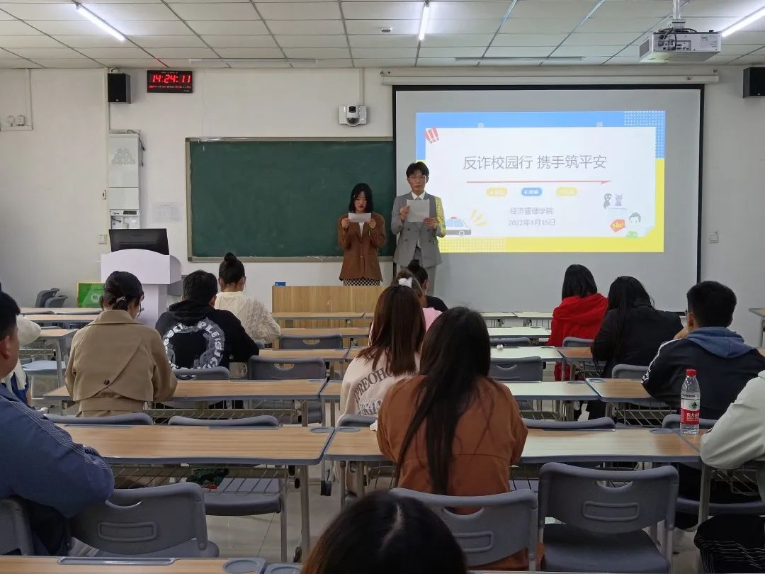 随后,全院学生代表按班级次序在写有“反诈校园行 携手筑平安”的宣传横幅上签名,表达了防诈反诈的决心和对反诈骗工作的支持。签完名后,全体到场学生一起观看了防诈骗宣传视频,以实际案例警醒学生,树立反诈意识。