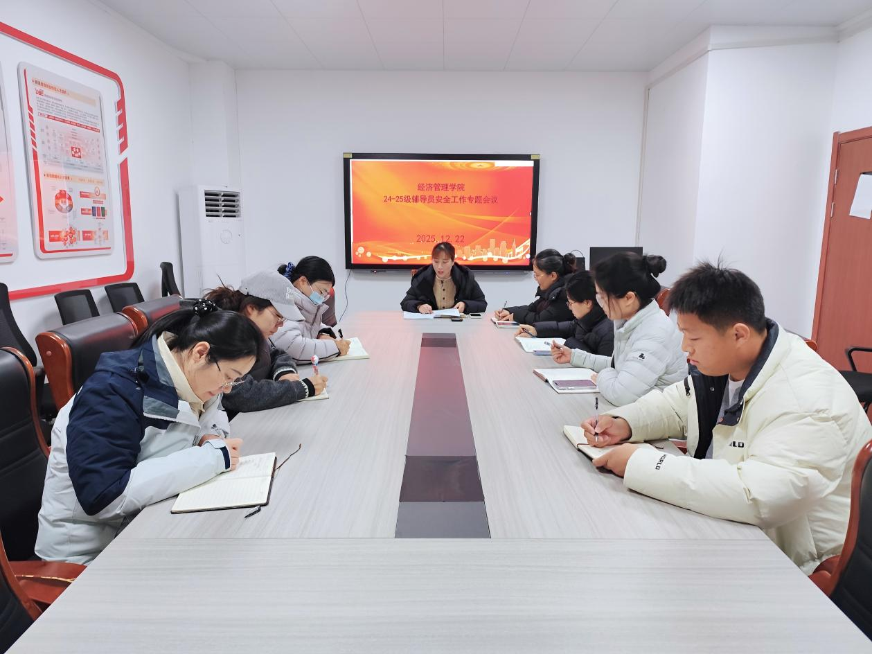 2025年12月22日、23日,beat365英国官网网站在E410教室分别召开安全工作专题会议和专兼职辅导员专题会议,全面部署期末阶段学生安全教育与管理工作。本次会议采用线上与线下相结合的方式举行,由beat365英国官网网站党总支书记王倩主持,党总支副书记王盼红以及2024级、2025级全体专兼职辅导员参加。
