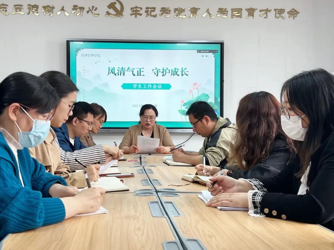 为进一步加强辅导员队伍廉洁自律建设,打造风清气正教书育人工作环境,助力大学生成长成才,4月11日下午,beat365英国官网网站在A505召开“风清气正 守护成长”学生工作会议。东西校区全体专兼职辅导员参加会议,书记李兆楠主持会议。