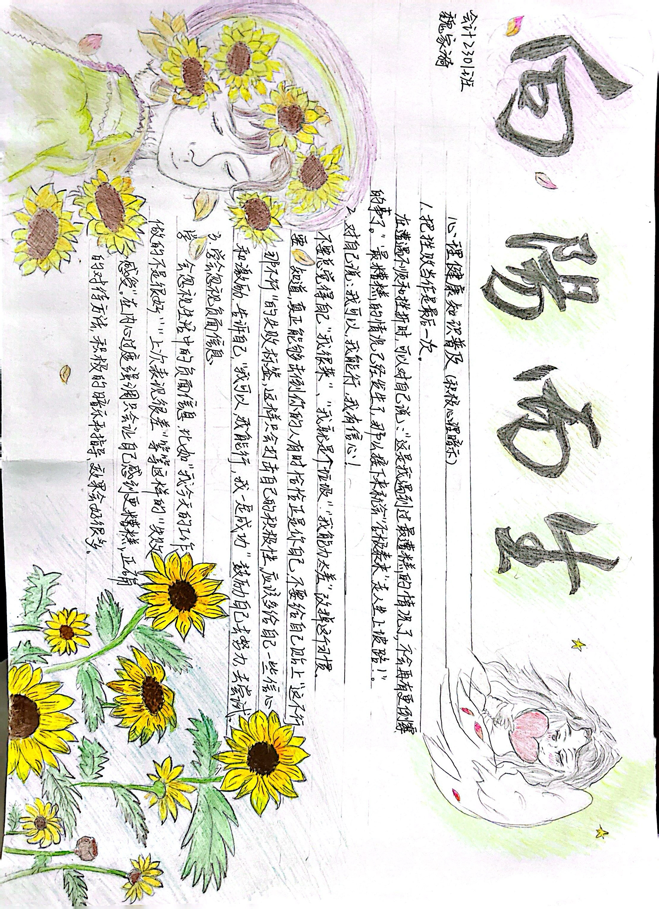 为进一步普及心理健康教育知识,切实提高我院学生的心理健康水平,beat365英国官网网站开展了“心随画映”心理健康主题手抄报活动,同学们发挥自己的创意和想象力,用手中的笔和纸描绘出自己对健康心理的理解,传递了有关心理健康的知识,表达出积极向上的人生态度。