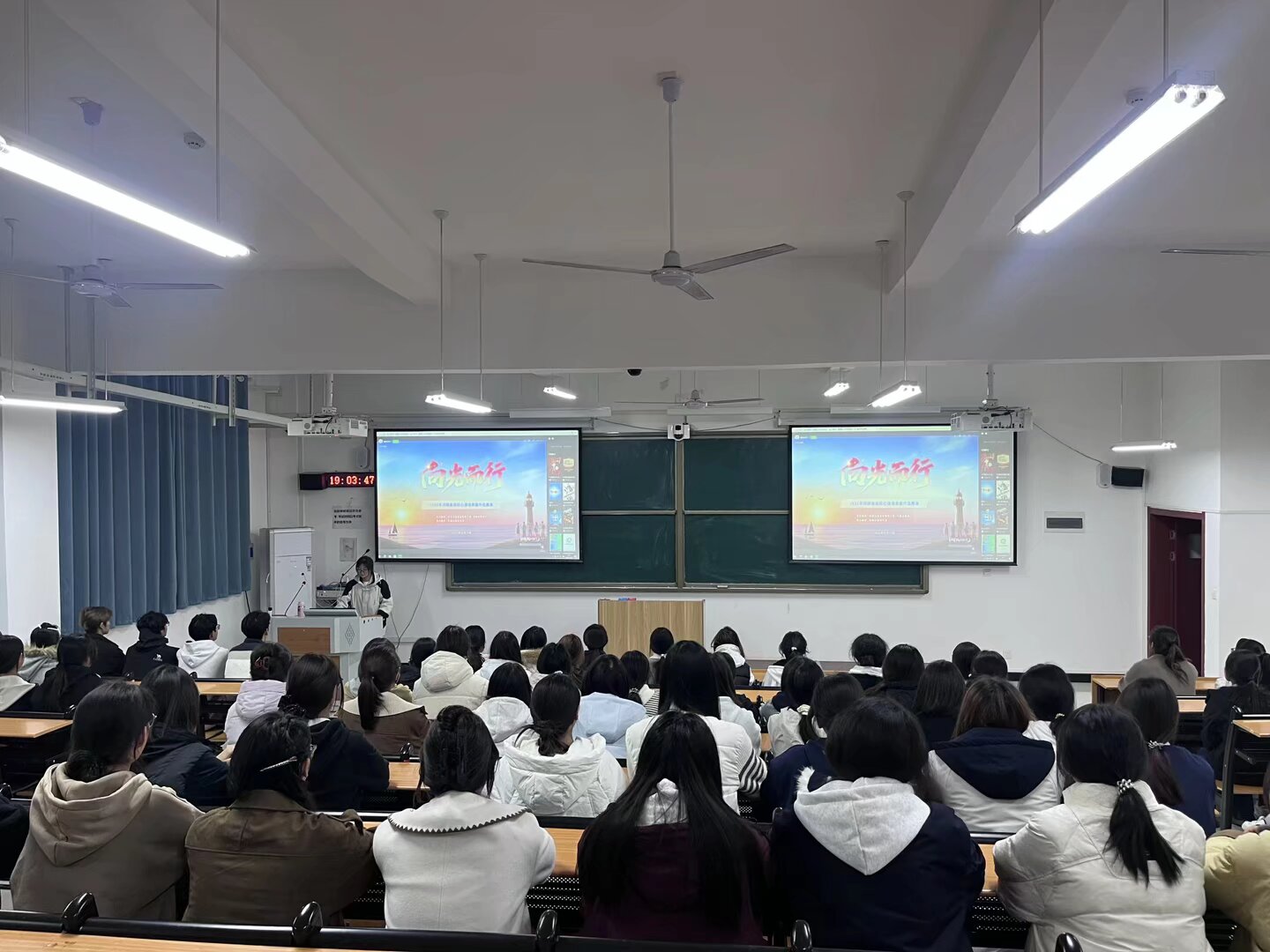 在集中观看现场,师生们全神贯注,被舞台上生动演绎的剧情深深吸引。展演剧目将大学生在学业压力、人际交往、自我成长、情感困惑中遇到的真实“心事”艺术化地搬上舞台,通过戏剧冲突与情感共鸣,深刻揭示了当代青年学生的内心世界与成长课题。一幕幕贴近校园生活的场景,一个个触动心灵的瞬间,不仅让同学们看到了自己的影子,更在艺术的沉浸中感受到了理解、接纳与鼓舞,实现了心灵的自我疗愈与成长赋能。
