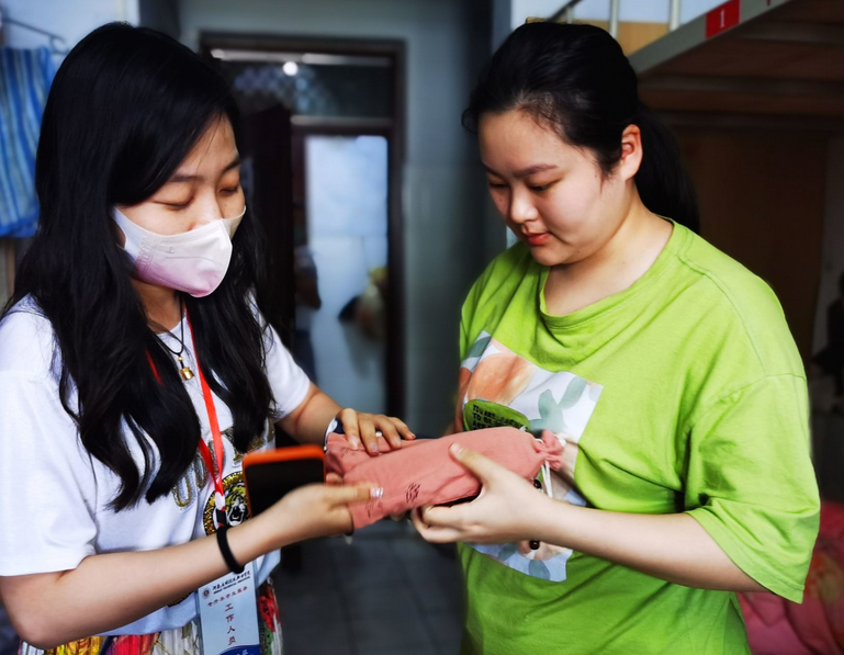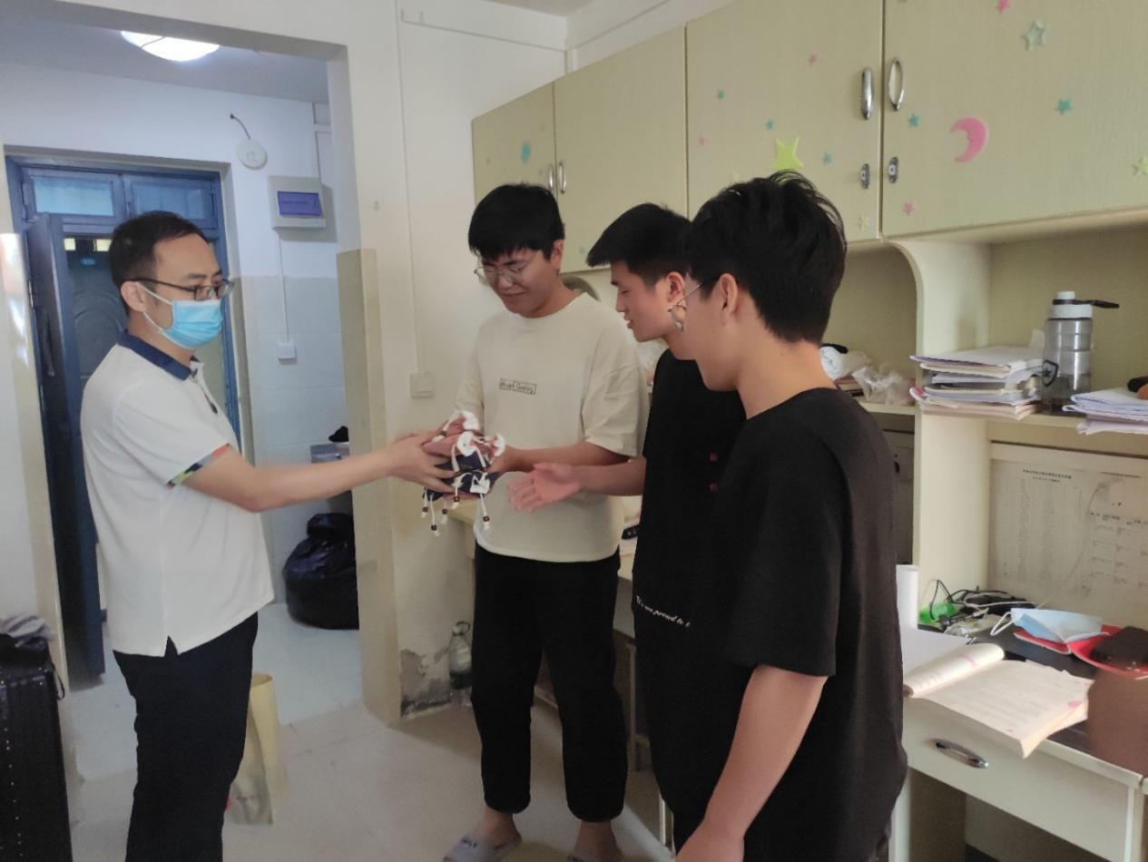 走访寝室期间,张召哲院长带领党员教师还给考生赠送了专属订制纪念品“木梳”。木梳,代表“不服输”,寓意健康快乐,一切烦恼一“梳”而光,希望大考当前所有考生都能放松心态、舒心顺心。