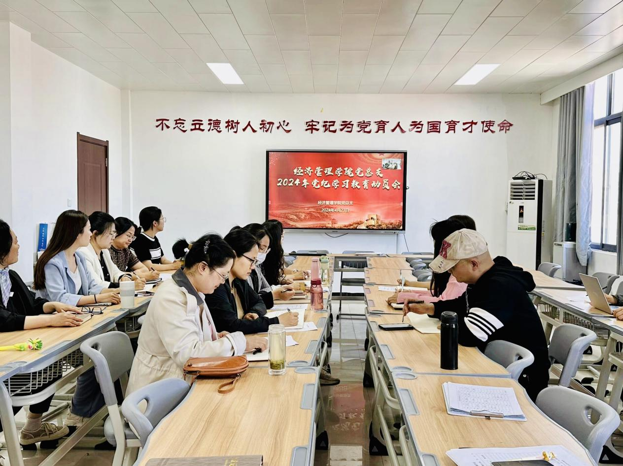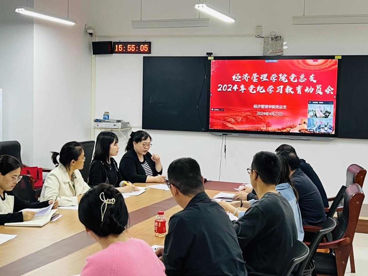 2024年4月23日,beat365英国官网网站启动部署党纪学习教育相关工作。书记李兆楠主持会议,全体党员教师参加会议。
