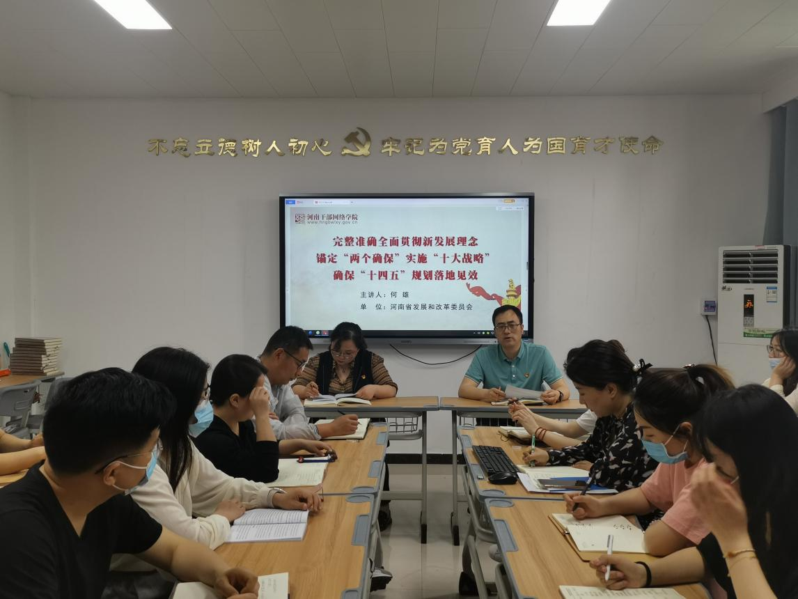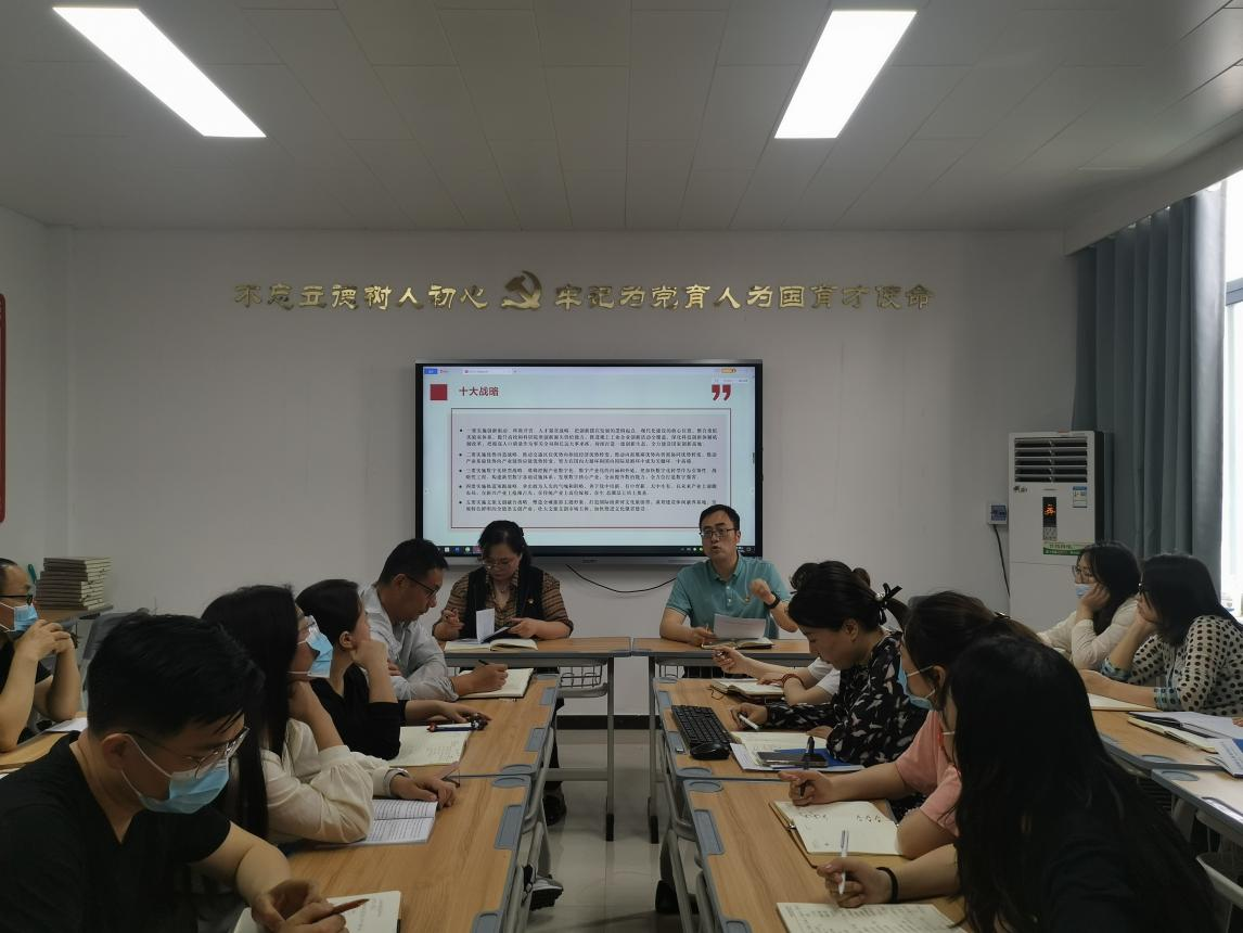 为进一步提升党员教师政治素养、政治站位,落实学校《关于组织党员进党校学习“十大战略”的通知》要求,2022年4月26日下午,beat365英国官网网站党总支在A505组织开展开展“十大战略”专题学习,集中观看河南干部网络学院直播课《完整准确全面贯彻新发展理念锚定“两个确保”实施“十大战略”确保“十四五”规划落地见效》,由郑州市委副书记何雄主讲。
