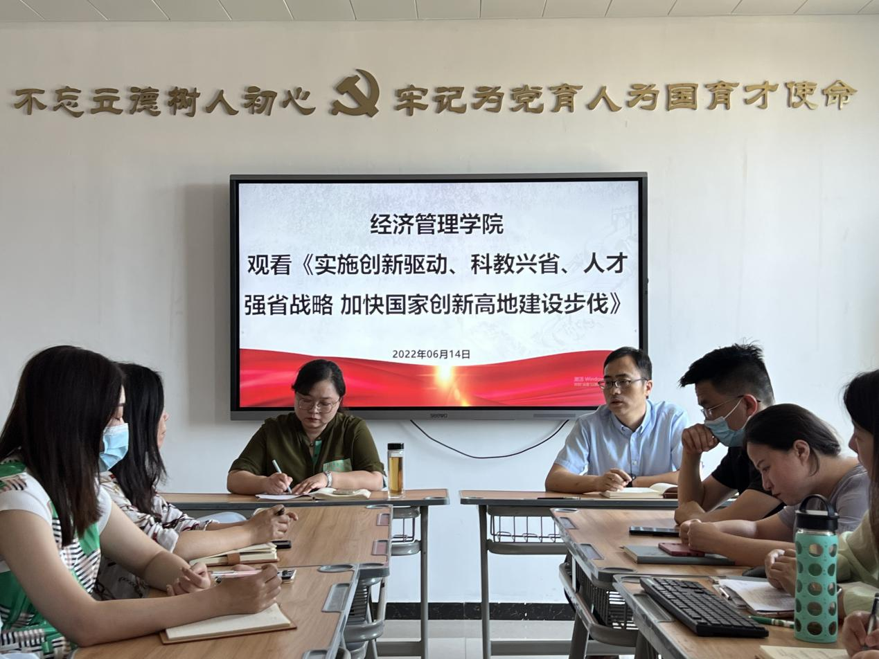 为深入贯彻落实省委“能力作风建设年”活动要求,聚焦实施“十大战略”,2022年6月14日下午,beat365英国官网网站党总支在A505组织观看《实施创新驱动、科教兴省、人才强省战略,加快国家创新高地建设步伐》。会议由党总支书记李兆楠主持。