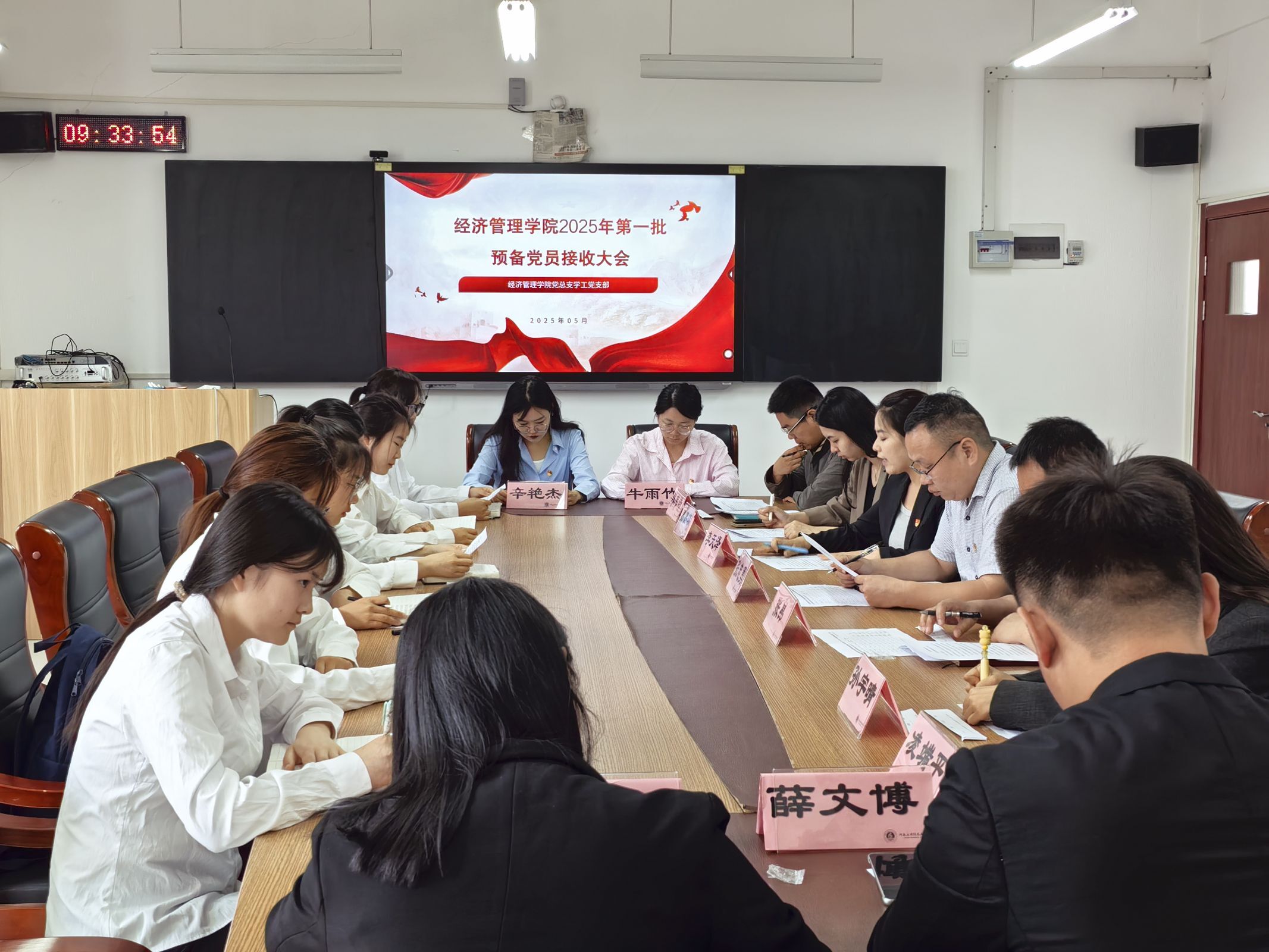 为加强基层党组织建设,切实提高党员发展质量,落实学院发展党员工作计划,5月23日,beat365英国官网网站党总支学工党支部召开接收预备党员大会,严格按照《中国共产党章程》和党员发展程序,讨论并表决张雨露等11名发展对象的入党问题。会议由学工党支部组织委员李天泽主持,学工党支部全体党员参加,党总支书记张忠勇出席会议并作总结讲话。