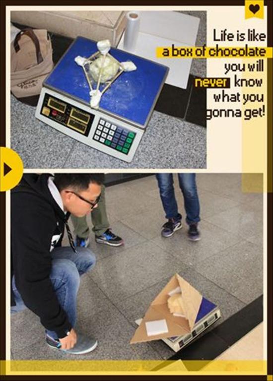 此次创意竞赛分别在3月22日和23日两天举行,从下午2点开始,三点结束。每个参赛队伍需在有限的时间内发挥无限的创意。具体规则是将一个采取了一定保护措施的鸡蛋从指定抛出地点扔下,使其自由下落。在鸡蛋不破的前提下,整个装置重量(不包括鸡蛋)越小、落地点距规定的坠地点越近,则积分越高。