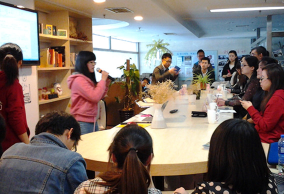 接下来,创业实践班的同学们参观了创业工坊在7楼的办公场所,以及正在孵化的一些创业公司,包括MOKA明信片。现场MOKA明信片公司的负责人与师生们交流了明信片创作的想法,并与学院创业者俱乐部达成合作意向。